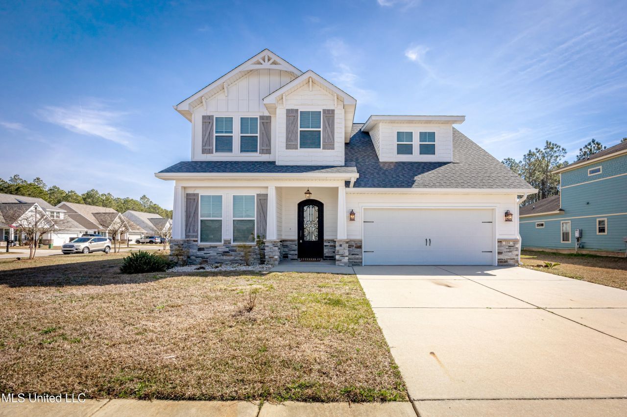 Welcome to 104 Westwind Court in the heart of Ocean Springs! Tucked away in this quiet little neighborhood of Madison Place, this charming home offers the perfect blend of privacy and convenience. Inside you will find a fabulous open floor plan, perfect for everyday comfort and entertainment. The kitchen flows effortless into the main living space. Built in 2018, this home offers tons of upgrades such as intricate crown molding, beautiful built-in bookcases that surround the fireplace, luxury vinyl plank flooring, upgraded lighting, stunning backsplash, large walk-in shower, farmhouse sink, coffered ceilings and a custom kitchen island that was recently done. Not only do you have 4 spacious bedrooms, but an office nook and a very large bonus room (great for gym, playroom, or even could be converted to a 5th bedroom). No flood insurance required here! Don't miss your opportunity to own your own little piece of paradise!