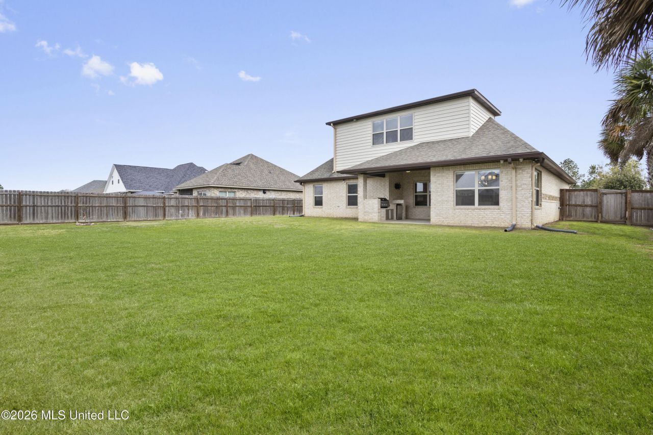 This home is not or be missed! First it is a great location with quick access to both 1-10 and Hwy 49. It was already an upscale Elliott model home with 4 bedrooms and 3.5 baths built for multi generation living, and this owner has made it even better with so many upgrades you won't need to do! Like a whole house Generac generator, secure privacy fencing, top of the line alarm system with cameras, smart home technology, custom shades, and landscaping lighting. It still shows like a new house with its 10 foot ceilings , 8 ft interior doors, high-end revolutionary floors and triple crown molding throughout the main living areas. The kitchen definitely is the heart of the home and this one will not disappoint! All stainless GE appliances with cooktop, and wall oven and microwave combo, beautiful granite counter tops with quartz backsplash and soft-close cabinets throughout. A sun room extension with wainscoting detail and shades. This is the open concept that buyers demand, yet with the split floor-plan that give the bedrooms privacy. The large great room is centered with an LED fireplace wood custom built-ins. The spacious primary Suite has a spa-like bath with a walk thru shower, separate soaking tub, double vanities and a Walk-in closet with more custom wood shelving. There is a complete in law suite upstairs AND a additional family room/den with half bath, AND a media or bonus room.So much house and its ready to move in! Once you step out the back door, you will love the Covered porch completed with gas powered outdoor kitchen and the huge grassy back yard with room for pool and play, all secured with a fence. Priced to sell, call your agent today to make an appointment to see inside and start living your dream life!