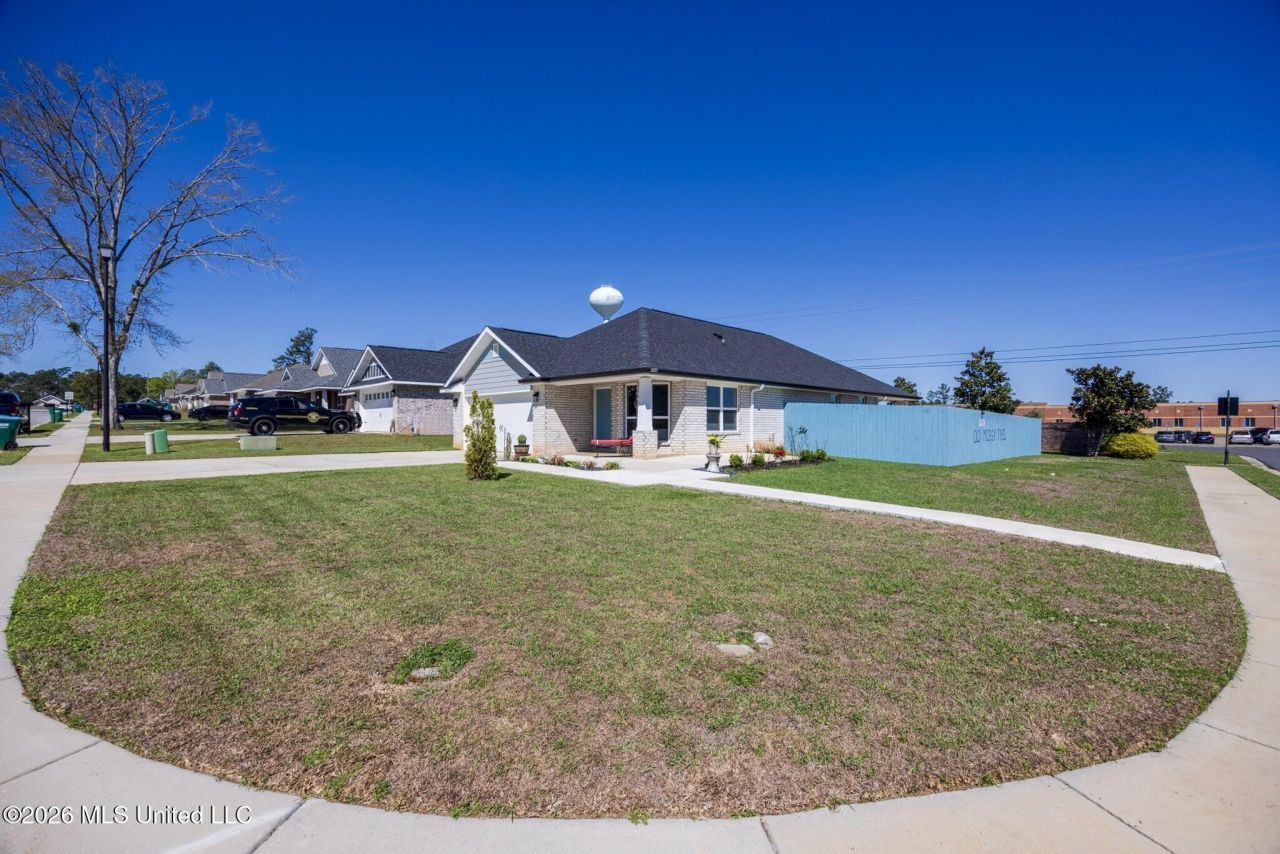 Classy Style home on a corner lot with a Front Bay Window that adds an extra touch of light. Enjoy a quiet, relaxing drive to I-10 or shortcut 605 to Hattiesburg. No need to stress over construction or traffic on HWY 49.This home was well cared for during the owners 2 1/2 years here and there are many upgrades like the widened driveway, landscaping, gutters etc. NO HOA.Pictures can not catch the beauty of this home. A walkthrough will let you experience the opportunity of what it feels like to call home. Luxury Vinyl Plank Flooring is installed under the living room carpet.