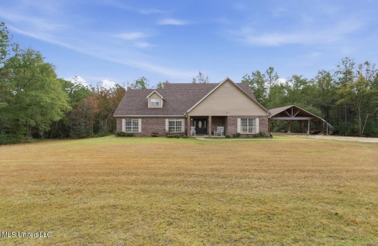 Edit mortgage details for a more accurate paymentPeaceful Sumrall Living on 2+ Acres! Set on a quiet stretch just minutes from town, this spacious brick home offers room to spread out, multiple bedroom suite options, and a huge fenced backyard with plenty of privacy. Inside you'll find a comfortable layout with two potential primary suites on the first floor, plus two additional bedrooms and 1.5 more baths, giving everyone space and flexibility. The kitchen features granite countertops, stainless appliances, and generous cabinet storage, and is open to the living area. Plantation shutters, wood-look flooring, and great natural light run throughout much of the main level. Upstairs is a large flex room perfect for a game room, media room, gym, etc. with the flooring already removed so you can install exactly what you want without paying to tear anything out. A fifth bedroom and a full bath and walk-in attic access completes the second floor. Out back, a huge fenced yard stretches out toward the tree line with plenty of space for pets, play, gardens, or future projects. A covered patio sits just off the living room, and there's a detached covered structure ifor parking or storage. Recent improvements include a roof that's only 2 years old, and the seller is including a First American Home Warranty for added peace of mind. The home could use a few cosmetic touch-ups but the size, layout, acreage, and location make it a standout opportunity with strong upside. If you're looking for space, privacy, and convenience to Sumrall, this one checks all the boxes! Schedule your private viewing today!