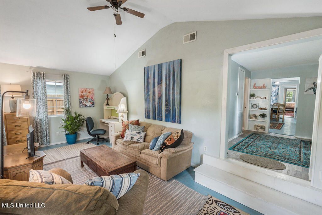 Location, location . . . Enjoy the beach life in a PRIME location, just a block and half from the beach, and walking or golf cart distance to Depot District and Olde Town Bay St Louis bars, restaurants, shops and entertainment!3 BR/2 BA cottage on deep shaded lot with four majestic old live oak trees. High elevation, Flood Zone X, no flood insurance required! Recently renovated with brand new roof and new Energy Star central air heat pump HVAC, vaulted cathedral ceiling in front family room, LVP flooring, recessed lighting, new tall Energy Star windows that flood the house with light, new doors and walls, fresh paint on interior and exterior, and more. The cottage features a separate and spacious Primary Suite with rear private entry and its own adjoining Primary Bath with clawfoot bathtub, perfect for rentals, while a Jack and Jill bathroom adjoins the front two bedrooms. Enjoy your coffee from your private and secluded screened-in side porch, adjoining the kitchen and breakfast area, all surrounded by live oaks, greenery and nature. Zoned Residential R-2, 50x180 lot, with a fully-fenced back yard deep enough to add a guest cottage and/or swimming pool. This could be your tranquil getaway vacation home, or could serve as your investment property, with a well-established history as a long-term, short-term and vacation rental with robust income. The cottage can be sold fully-furnished and turn-key, ready to rent. Buyer and/or their agent to verify square footage and all other provided information. BUYERS' AGENTS WELCOME, ALL REASONABLE OFFERS WILL BE REVIEWED.
