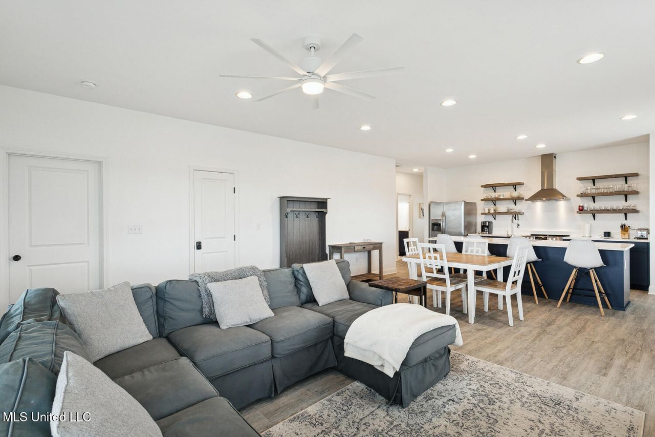Stunning waterfront retreat in Bay St. Louis, perfectly situated just off Bayou Lacroix and the Jordan River! Built in 2019, this immaculate 4-bedroom, 2.5-bath home offers the ideal blend of luxury, comfort, and income potential. This would be perfect as a primary residence, second home, or cash-flowing rental. Raised on solid cinderblock pilings, the home features a bright, open floor plan ideal for entertaining and everyday living. The chef's kitchen has stainless steel appliances, quartz countertops, and a large island bar overlooking the main living area. Enjoy expansive outdoor living with a huge mid-level deck for entertaining and a private upper-level terrace balcony offering tranquil water views. The ground level provides generous covered parking for vehicles, boats, or an RV, plus versatile space for outdoor entertaining and recreation. Launch your boat directly from your private dock with deep-water access, putting world-class fishing, boating, and waterfront adventures just minutes away. Seller is willing to sell fully furnished, making this an exceptional turnkey opportunity. Don't miss your chance to own this remarkable waterfront home, schedule your private showing today!