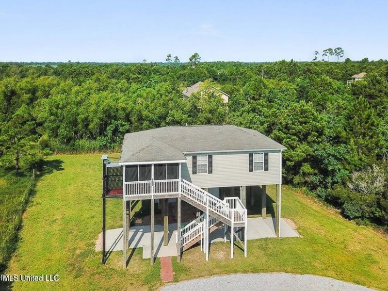 Gulf view vacation home or investment property in the beachside community of Clermont Harbor. Located just one block from the water, enjoy the convenience of this location between Buccaneer State Park and Silver Slipper Casino. This area is a Sportmans Paradise. With easy access to the local public pier you have it all. Sit on the screened front porch and pass a good time. You will enjoy water views and Gulf breezes. A cargo lift was added for convenience! Plenty of space under the house for entertaining and a large 100x153 lot offers endless possibilities for this beach view home.