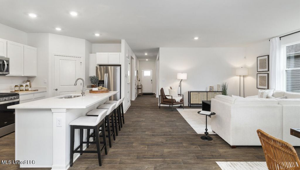 Welcome to your dream home! This splendid 4-bedroom,3-bathroom, with a an open floor plan that fosters a warm and inviting atmosphere, perfect for entertaining and family gatherings. The kitchen is a chef's delight featuring cabinets that provide ample storage, and a grand island topped with sleek granite, complete with built-in cabinets for extra convenience. Fully equipped with stainless steel Whirlpool appliances, including a gas range, dishwasher, microwave, and side-by-side refrigerator, this kitchen is ready for any culinary challenge. *Listing pictures are of the same floorplan but not the exact home. Pictures, photographs, colors, features, and sizes are for illustration purposes only and will vary from the homes built. Photos are for representation purposes only while in construction phases.